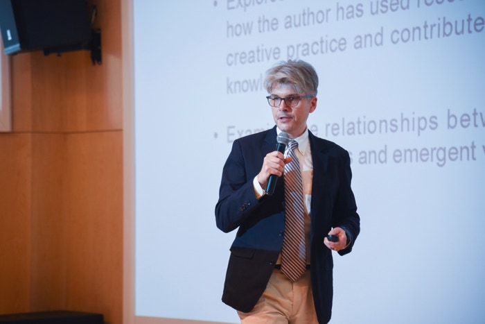 He has lectured on cross-cultural collaboration at Columbia University Global Center Beijing; Cambridge University; University of the Arts London; University of California Santa Barbara; University of Coventry; Bard Smolny College, St. Petersburg; La Salle School of Art, Singapore; and Beihang University of Aeronautics and Astronautics, Beijing;